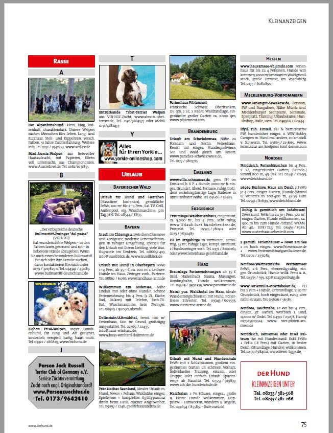 Kleinanzeigenformate im Magazin DER HUND